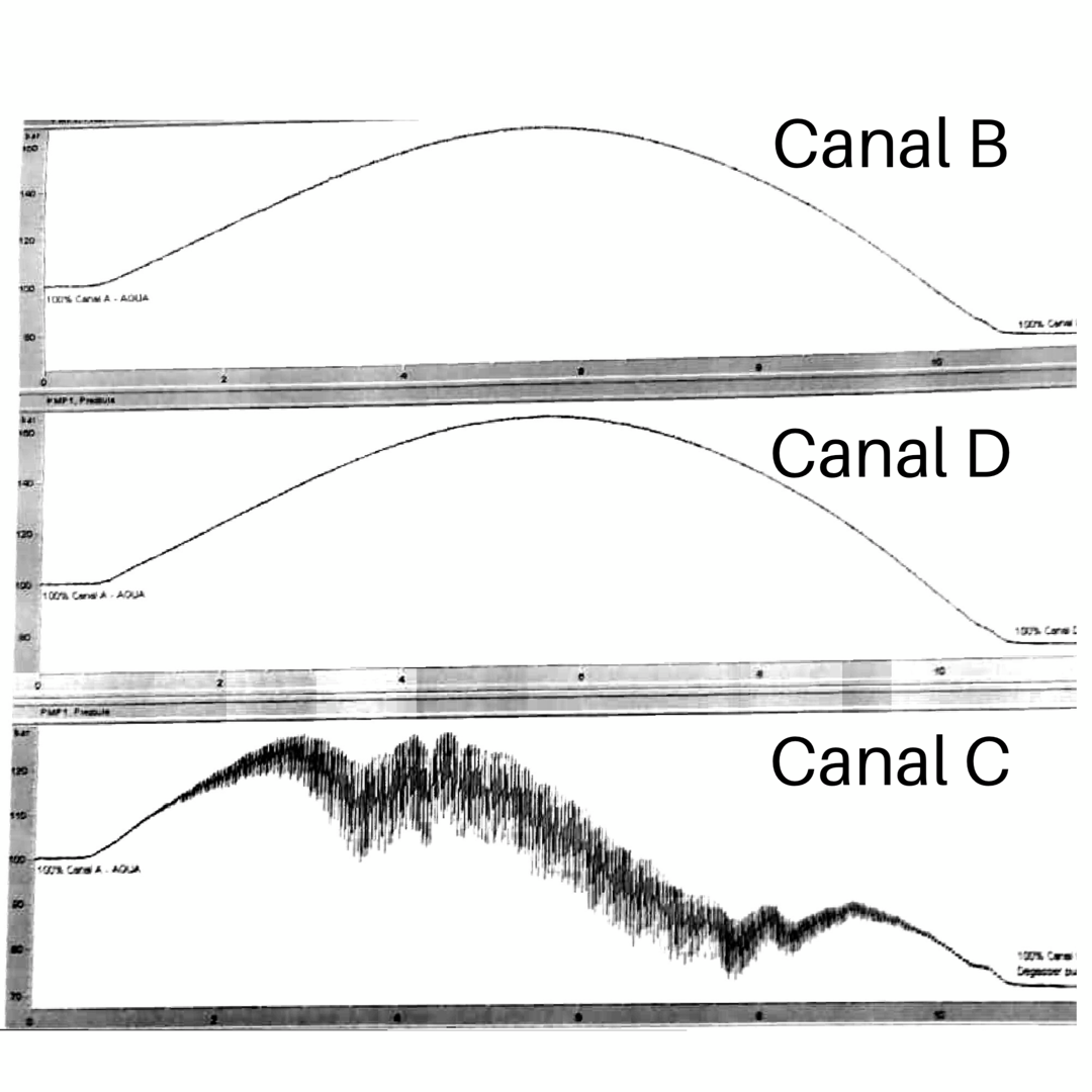 Fijate cómo el comportamiento es distinto, dependiendo del canal del degasser que se usa. Claramente, uno de los tres canales (en este caso, el C), no funciona.